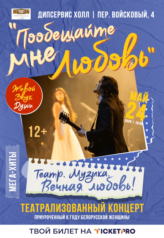 Возврат билетов по инициативе покупателей на данное мероприятие осуществляется до 22 мая 2026 включительно. Инфолиния по возврату билетов: +375 29 693-59-35 (ежедневно с 9.00 до 20.00).