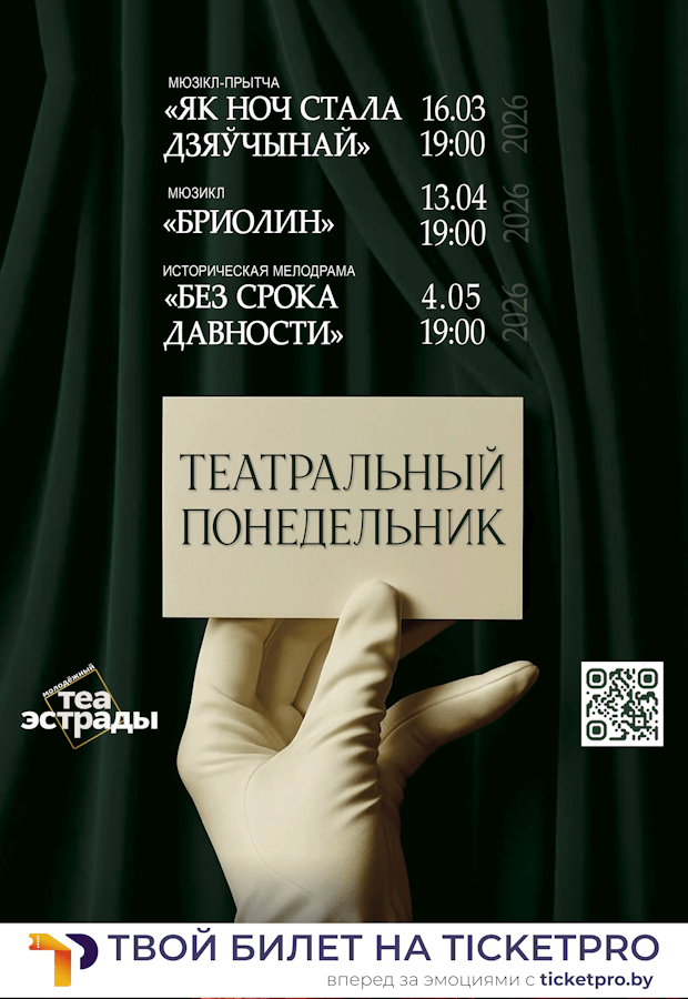 Проект «Театральный понедельник» – это смелое решение Молодежного театра эстрады, которое переворачивает представление о театральных вечерах. В то время, как понедельник традиционно считается не самым театральным днем, мы решили бросить вызов стереотипам и представить уникальные спектакли, которые будут вдохновлять, волновать и заставлять задуматься. Мы будем радовать зрителей особенными проектами, которые предлагаем вам выбрать не по привычным критериям – описанию, фотографиям, отзывам, а по эмоциям и ощущениям, которые они вызывают.