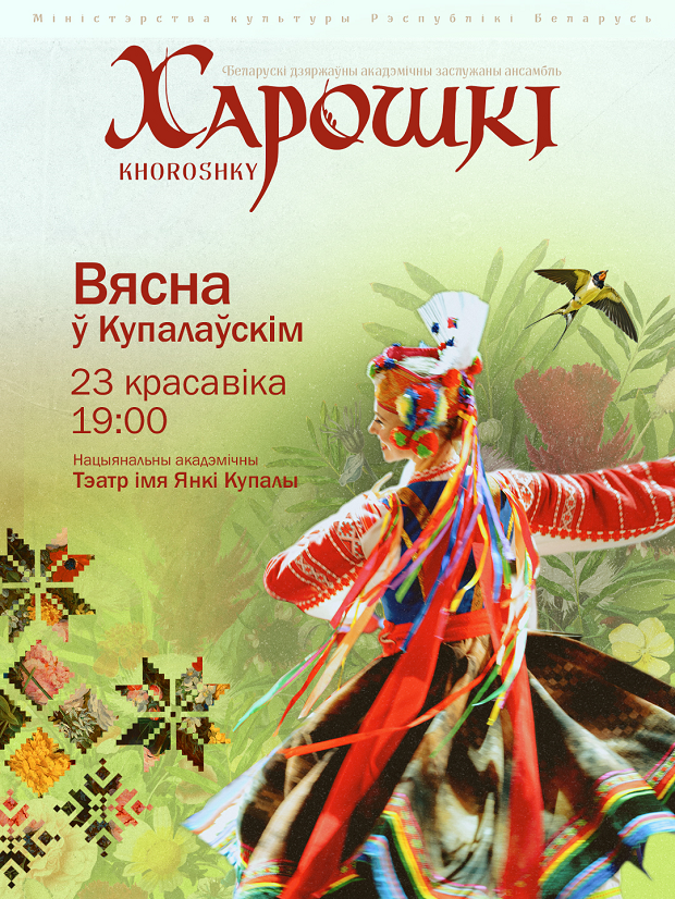 Беларускі дзяржаўны акадэмічны заслужаны харэаграфічны ансамбль «Харошкі» запрашае ўбачыць тэатралізаваную праграму «Вясна ў Купалаўскім» - яркую, эмацыйна багатую, напоўненую разнастайнымі фарбамі і непаўторнымі мастацкімі вобразамі.