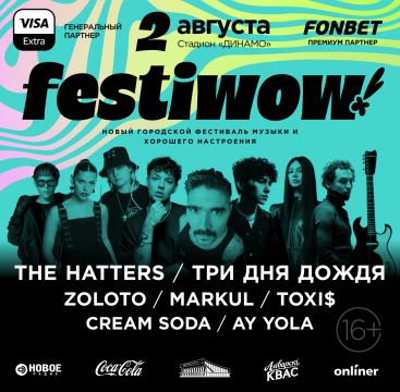 FESTIWOW объявил еще трех хэдлайнеров: AY YOLA, MARKUL и ТРИ ДНЯ ДОЖДЯ ждут вас на стадионе “ДИНАМО” 2 августа