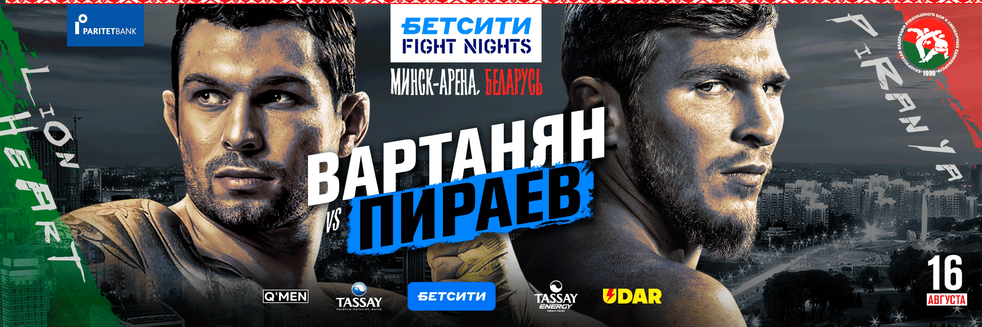 16 августа 2025 года в Минске состоится событие, которое уже называют центральным боем года — BETCITY FIGHT NIGHTS при поддержке банка PARITET и Белорусской федерации рукопашного боя и ММА представляют поединок, который обещает стать легендарным: Эдуард Вартанян против Марифа Пираева.