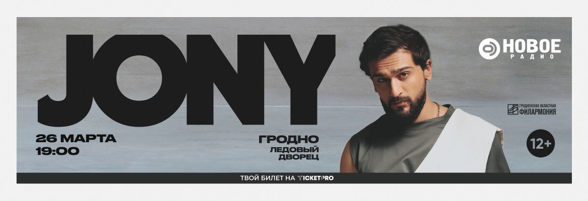 26 марта в Ледовом дворце Гродно состоится первый большой сольный концерт JONY. Автор хитов «Комета», «Камин», Love Your Voice, «Титры», «Мир сошёл с ума» и других популярных композиций представит масштабную программу для гродненской публики.